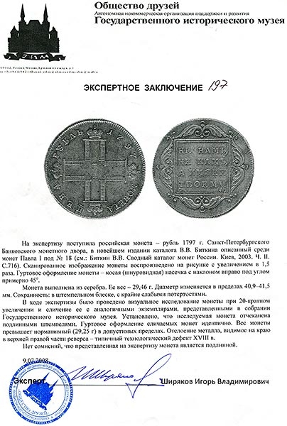 С экспертным заключением Общества друзей ГИМа за подписью И.В. Ширякова.