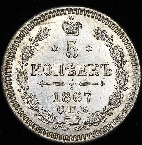 5 копеек 1867 СПБ-НI