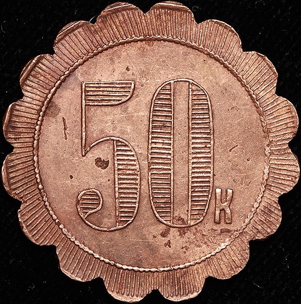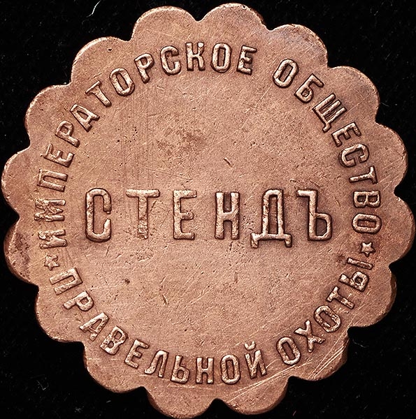 Жетон. 50 копеек. Для стендовой стрельбы Императорского Общества правельной охоты