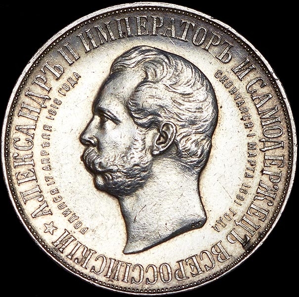 Чеканена по случаю открытия памятника императору Александру II в Москве. Довольно редка.
