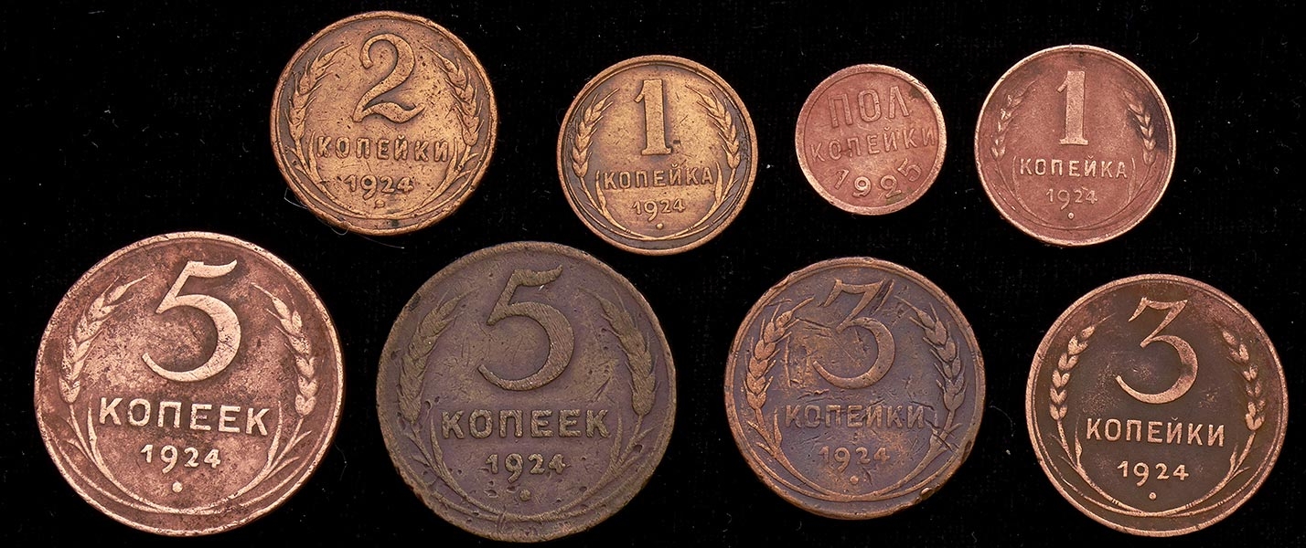 Набор из 7-и медных монет 1924-25
