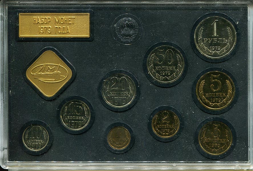 Годовой набор монет СССР 1979 года Ленинградского монетного двора с жетоном и годовой плашкой.