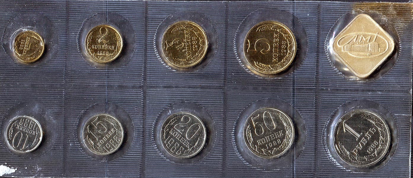 Годовой набор монет СССР 1988 года Ленинградского монетного двора с жетоном.
