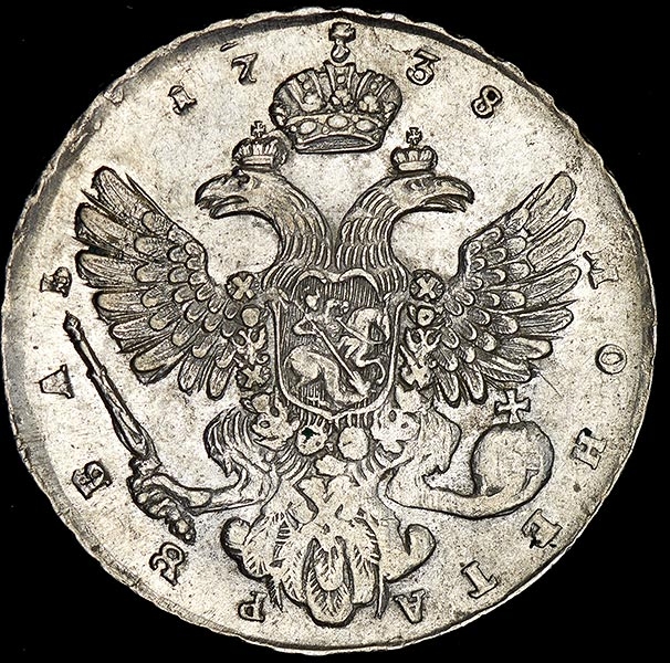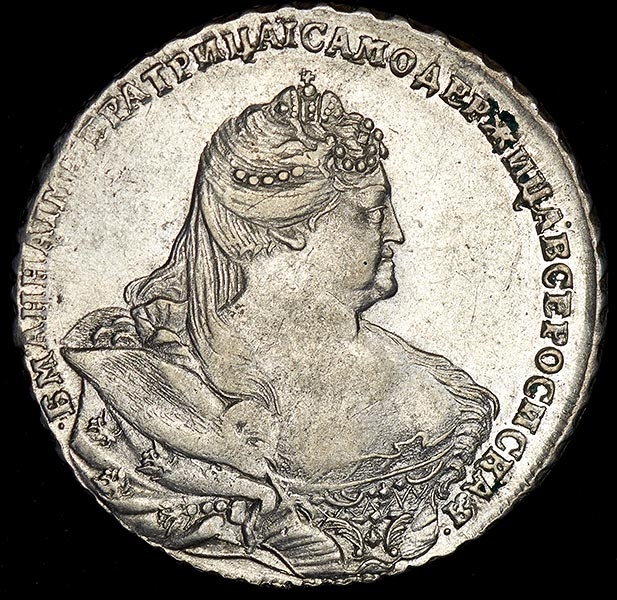 Красный монетный двор. 5 жемчужин в прическе. Точка в начале и в конце легенды аверса.