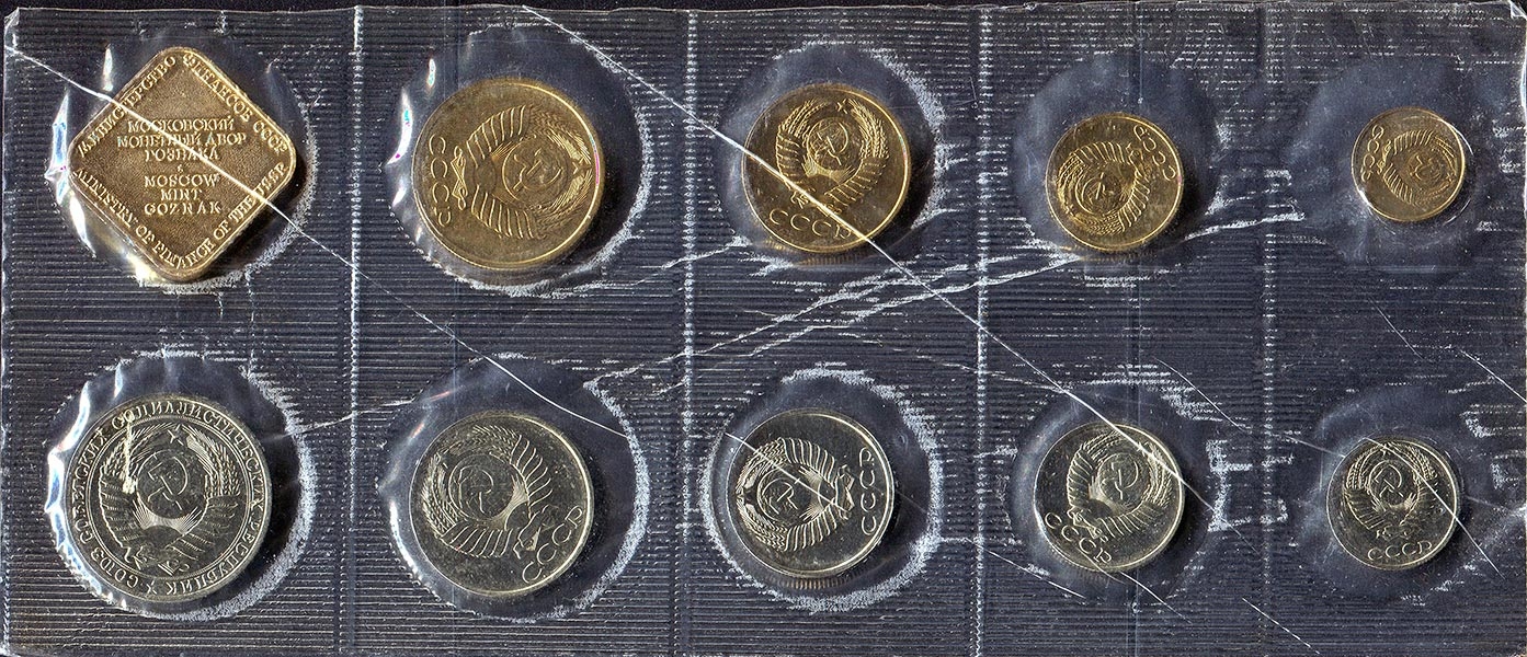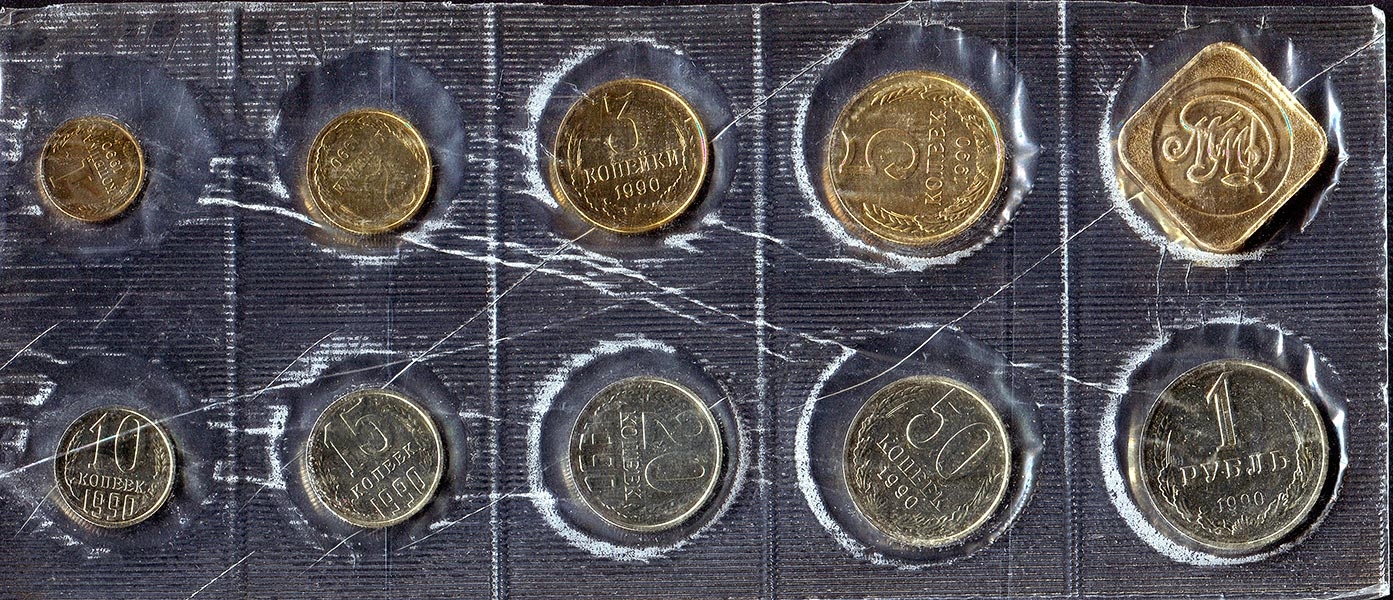Годовой набор монет СССР 1990 года Московского монетного двора с жетоном.