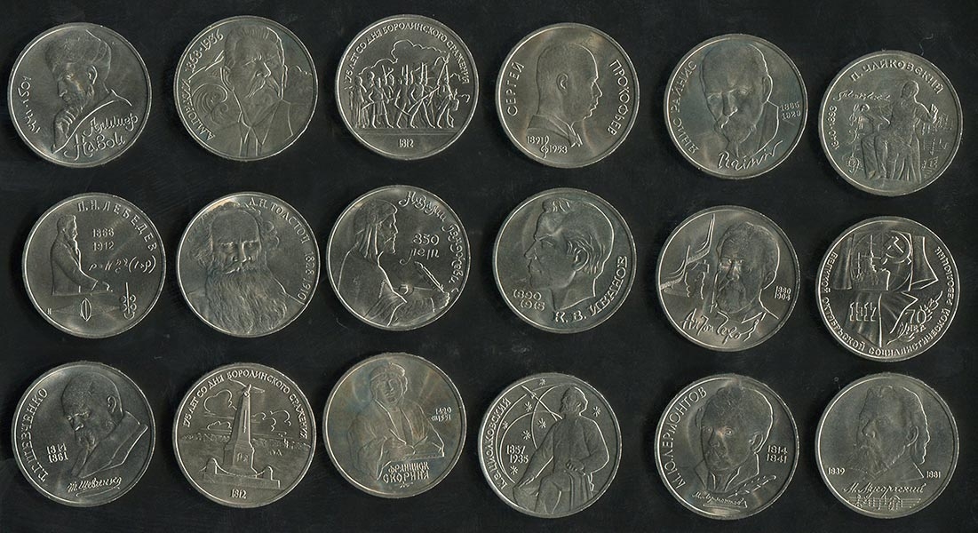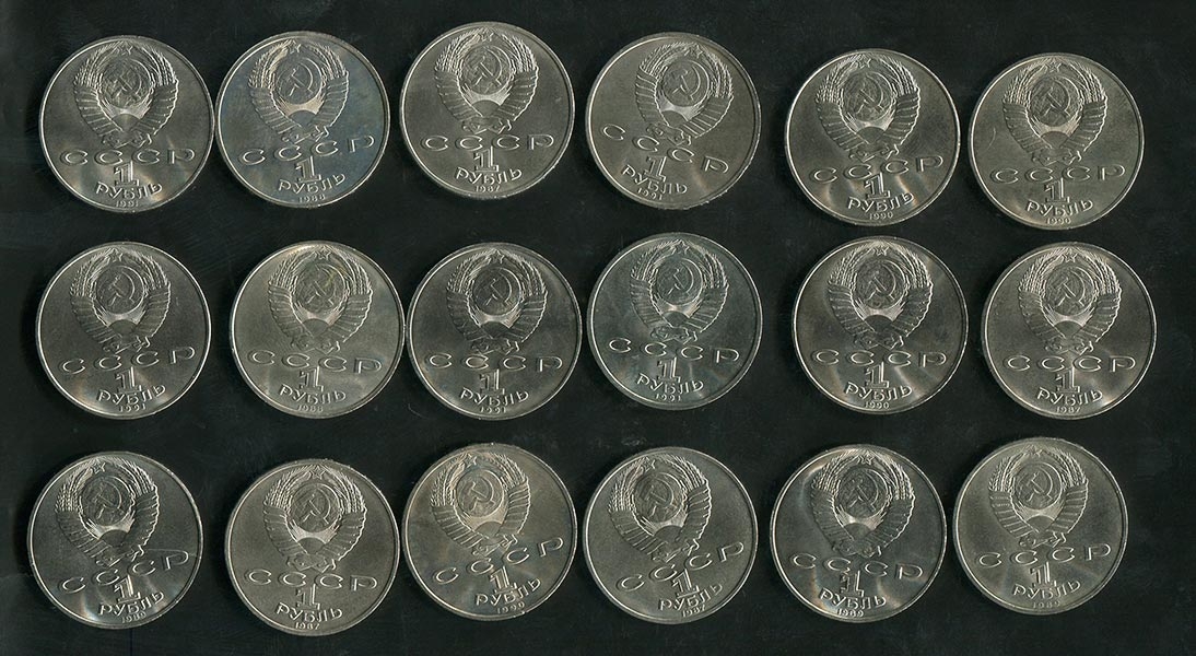 Набор из 18-ти памятных монет СССР номиналом 1 рубль 1987-91 гг.