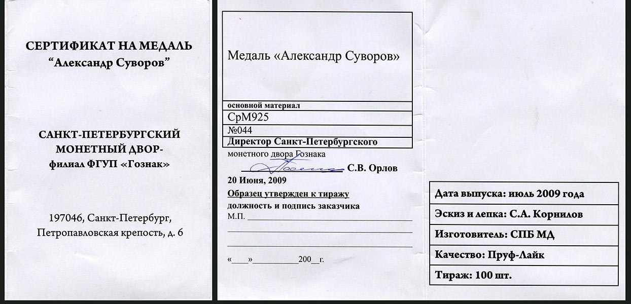 На данной медали ошибочно указан год рождения А.В. Суворова 1720. На самом деле он родился в 1730 году.