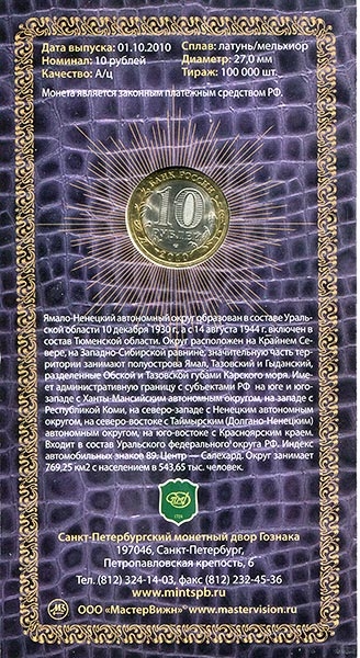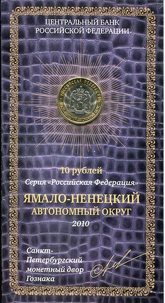 10 рублей 2010 "Ямало-Ненецкий АО" (в п/у) СПМД