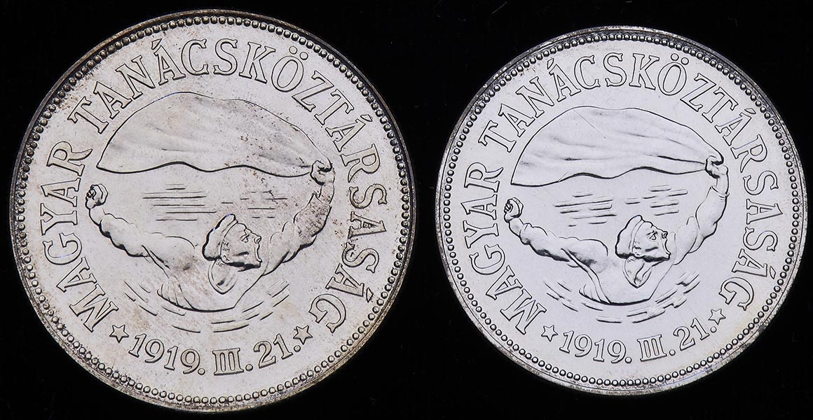 Набор из 2-х монет 50 и 100 форинтов 1969 года "50 лет Венгерской Советской Республике" в подарочной упаковке.