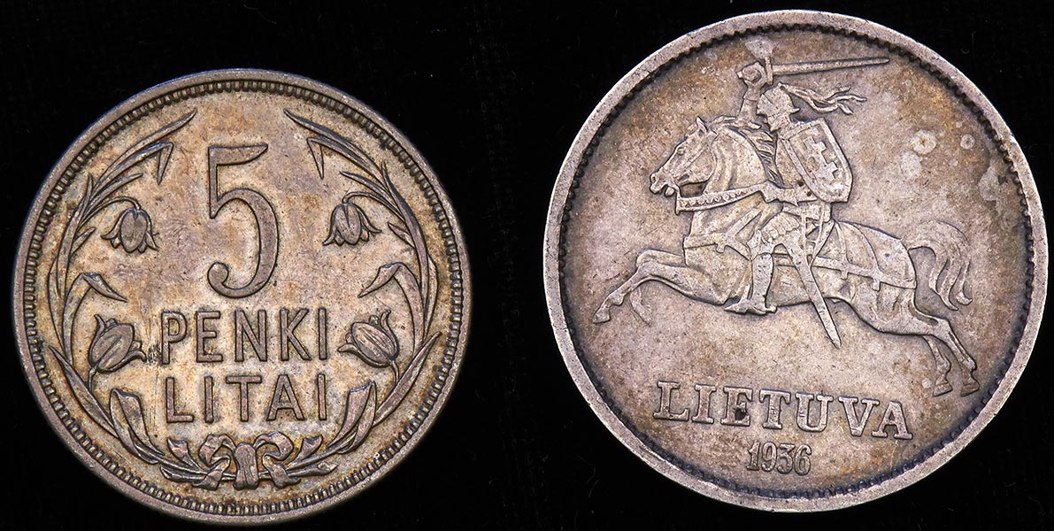 2) 10 лит 1936 года (серебро 750 пробы, 18 г.)