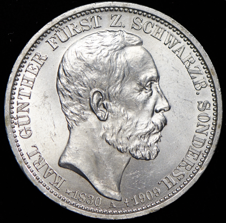 Легенда аверса "KARL GÜNTHER FÜRST Z. SCHWARZB. SONDERSH. 1830 - 1909"