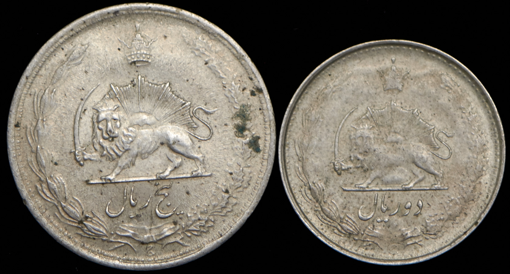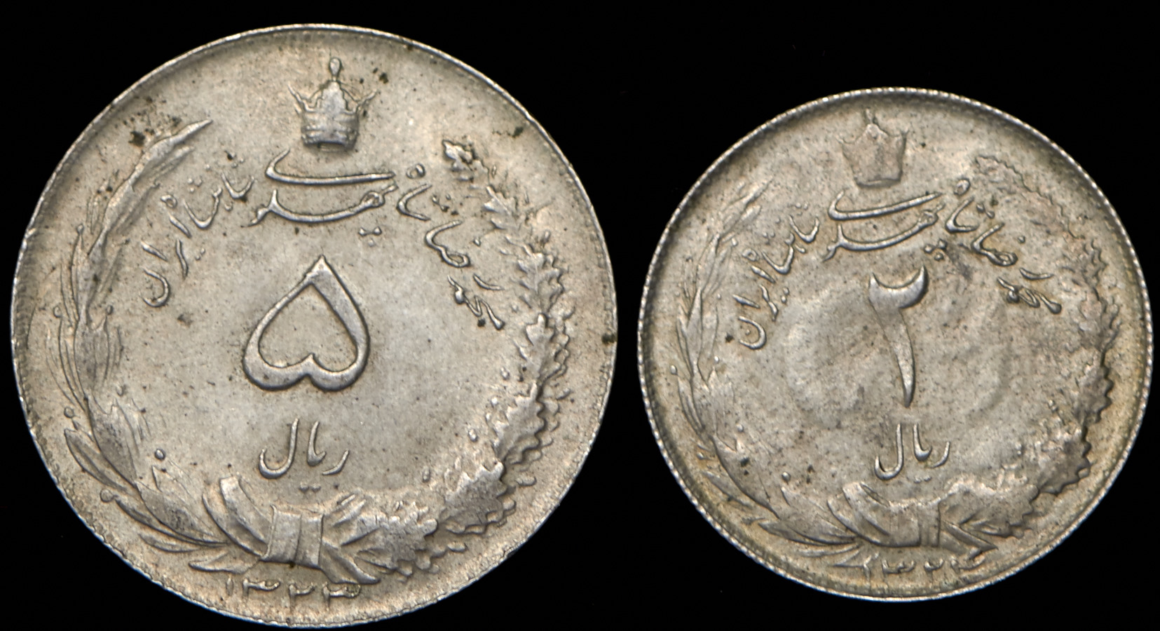 5 реалов 1944 (1323 г.х.) и 2 реала 1945 (1324 г.х.)