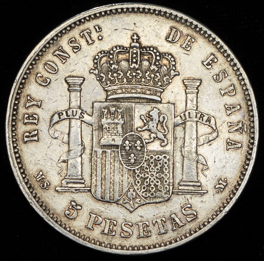 Легенда аверса "ALFONSO XII POR LA G·DE DIOS".