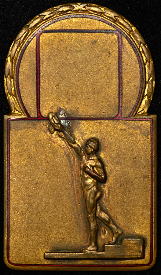Размер 65х35 мм.Бронза, эмаль красного цвета. 1930-е годы.