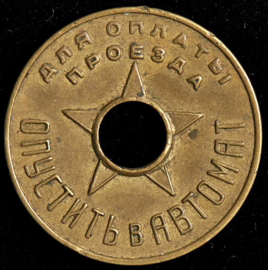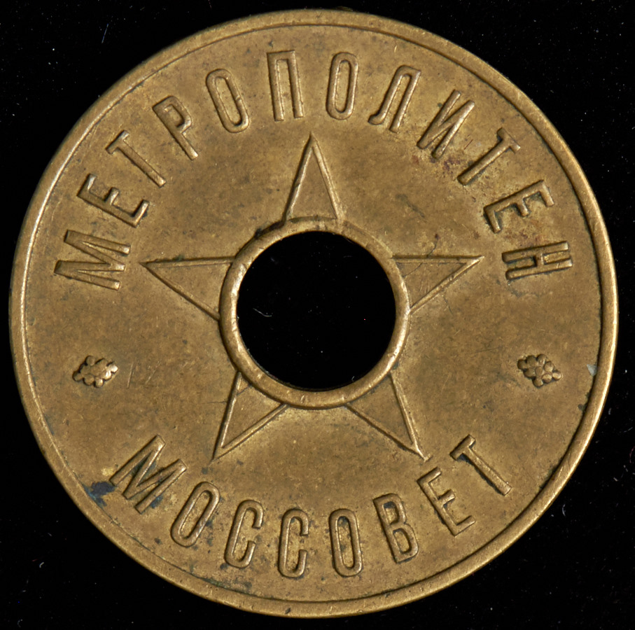 Жетон Моссовета 1935 г. для оплаты проезда в Московском метрополитене РСФСР им. Кагановича.