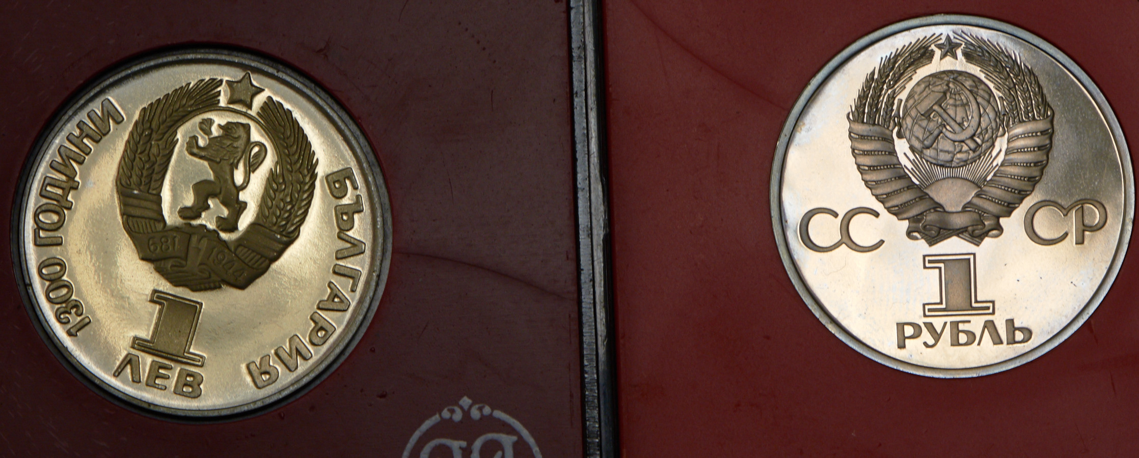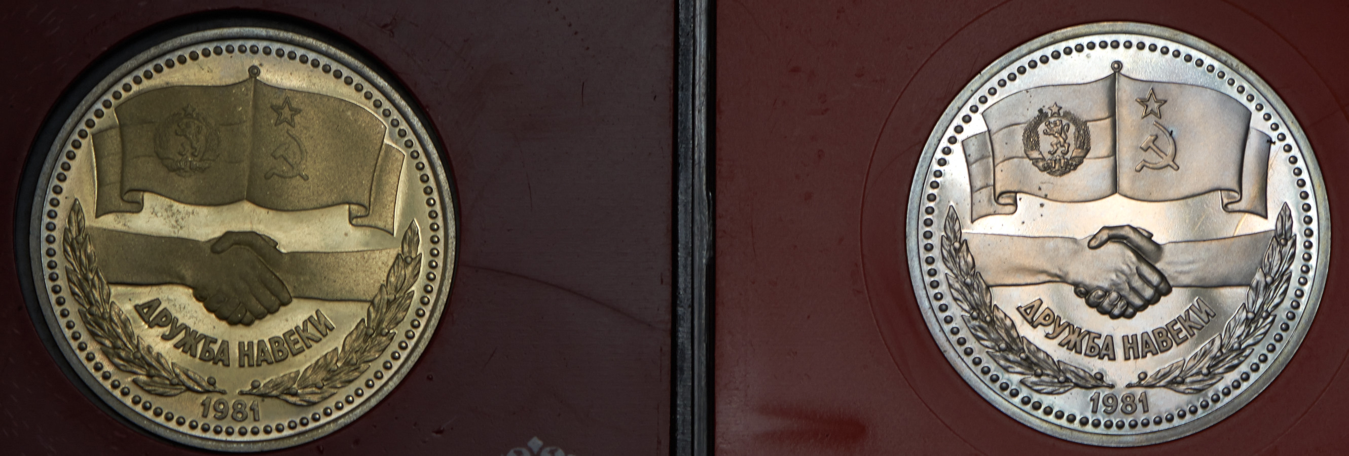 Набор из 2-х монет 1 лев и 1 рубль 1981"Дружба навеки" (в п/у)