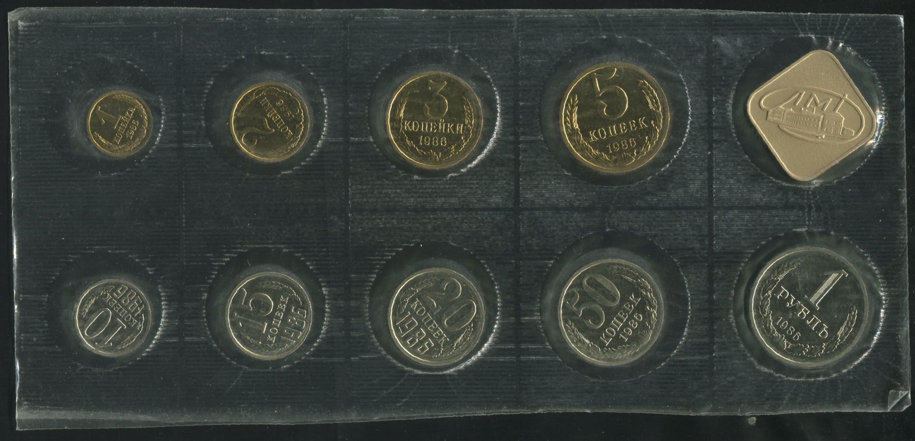 Годовой набор монет СССР 1986 года Ленинградского монетного двора с жетоном.