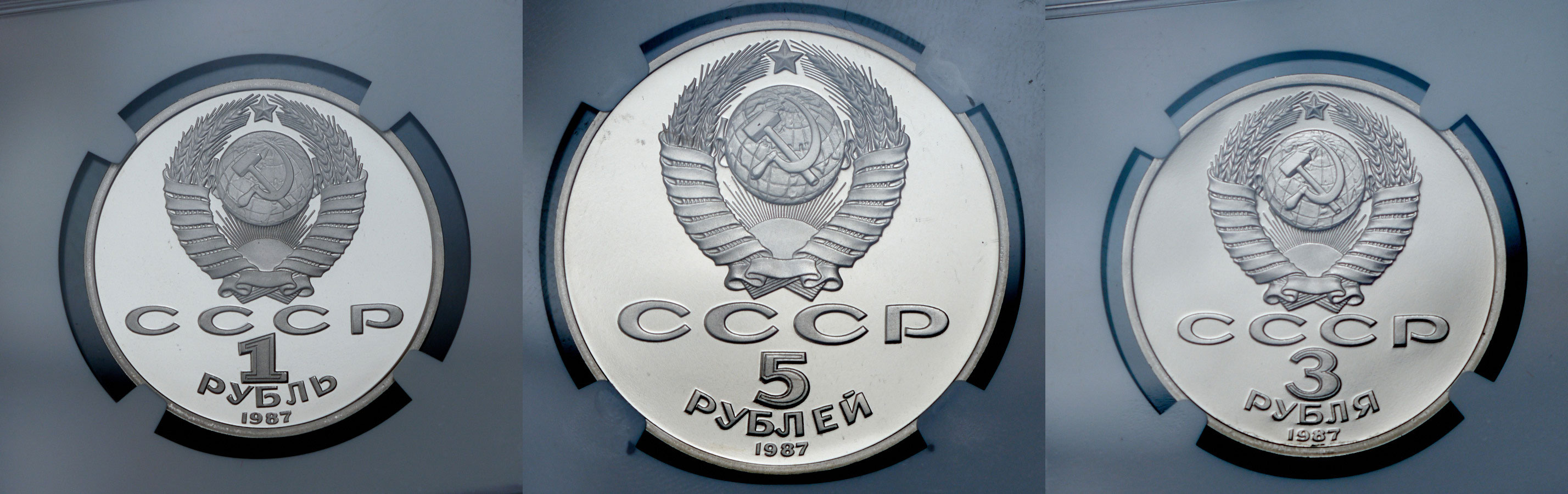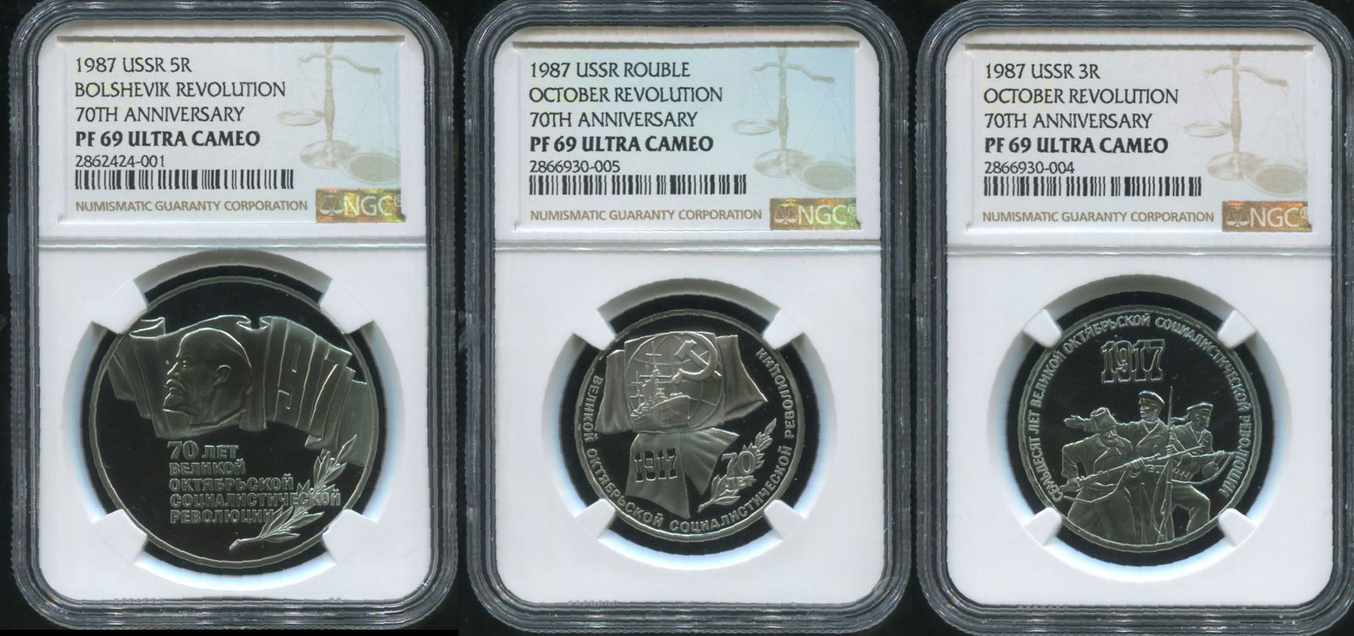 Набор из 3-х монет "70 лет Революции) (в слабах)