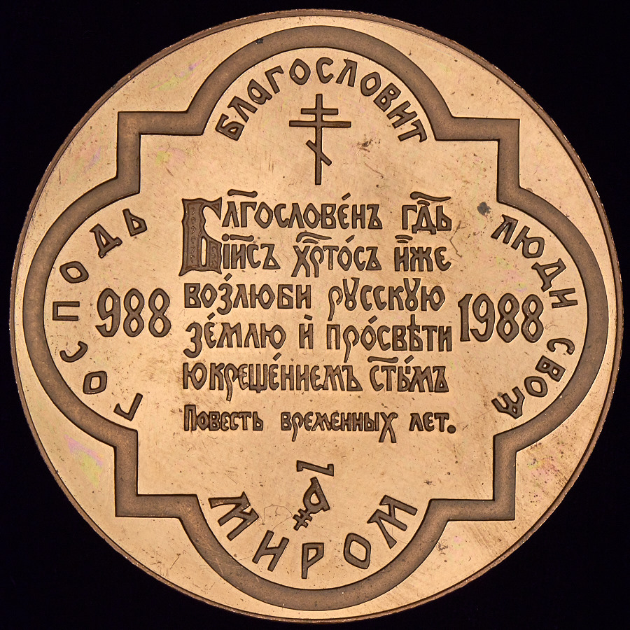 Памятная медаль "В ПАМЯТЬ ТЫСЯЧЕЛЕТИЯ КРЕЩЕНИЯ РУСИ".
