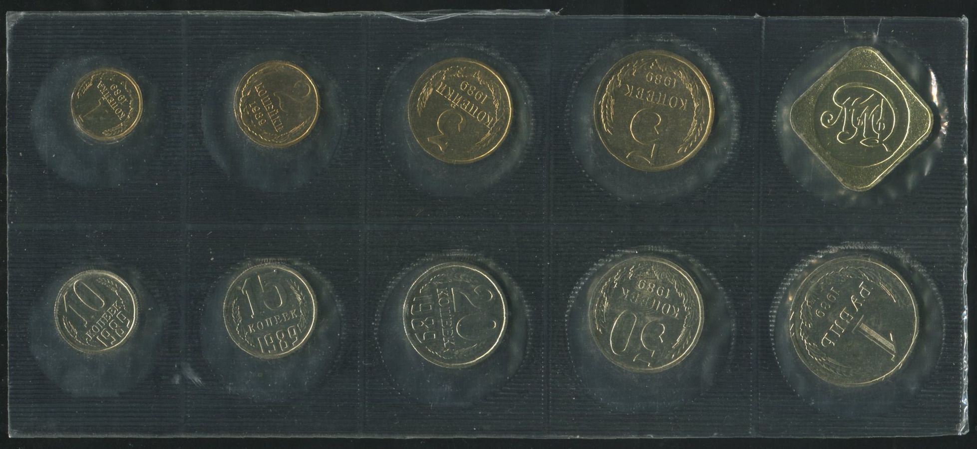 Годовой набор монет СССР 1989 (в мягк. запайке) ММД