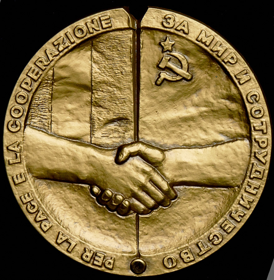 Одна сторона медали выполнена итальянским художником Лжорио Виварели, другая - советским художником Александром Баклановым.