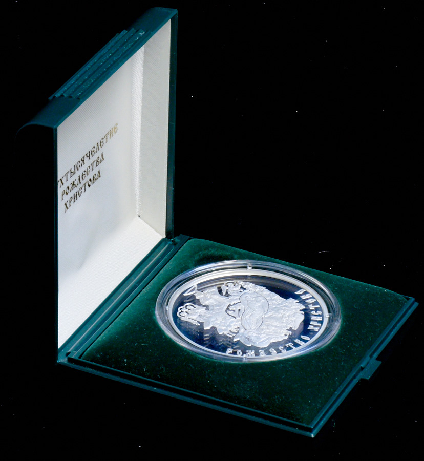 В оригинальной подарочной коробочке с надписью "Двухтысячелетие Рождества Христова".