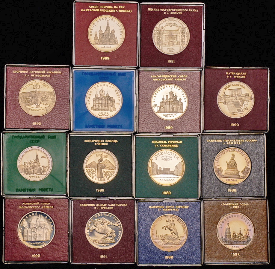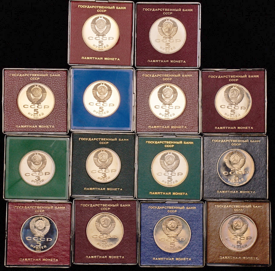 Набор из 14-ти памятных монет 3 и 5 рублей (в п/у)
