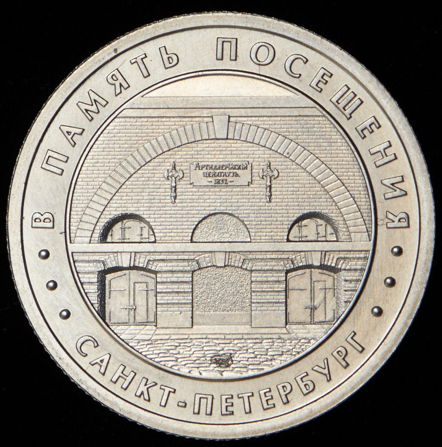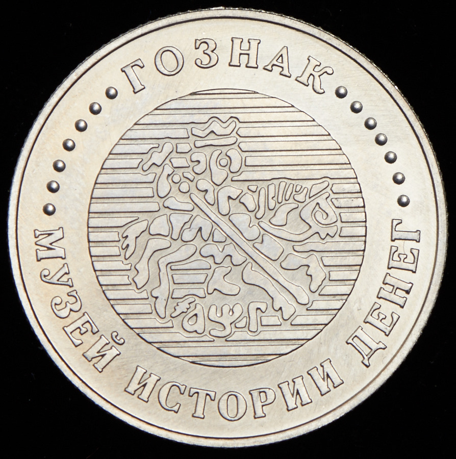 На его лицевой стороне изображен логотип Музея истории денег, на оборотной - центральная часть здания Аннинского кавальера Петропавловской крепости, в котором находится основная экспозиция музея.