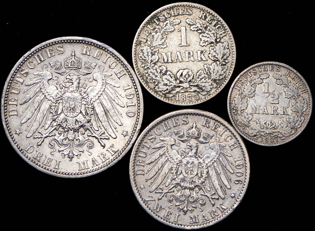 В набор вошли 3 марок 1910 (Пруссия), 2 марки 1906 (Пруссия), 1 марка 1885, 1/2 марки 1907.