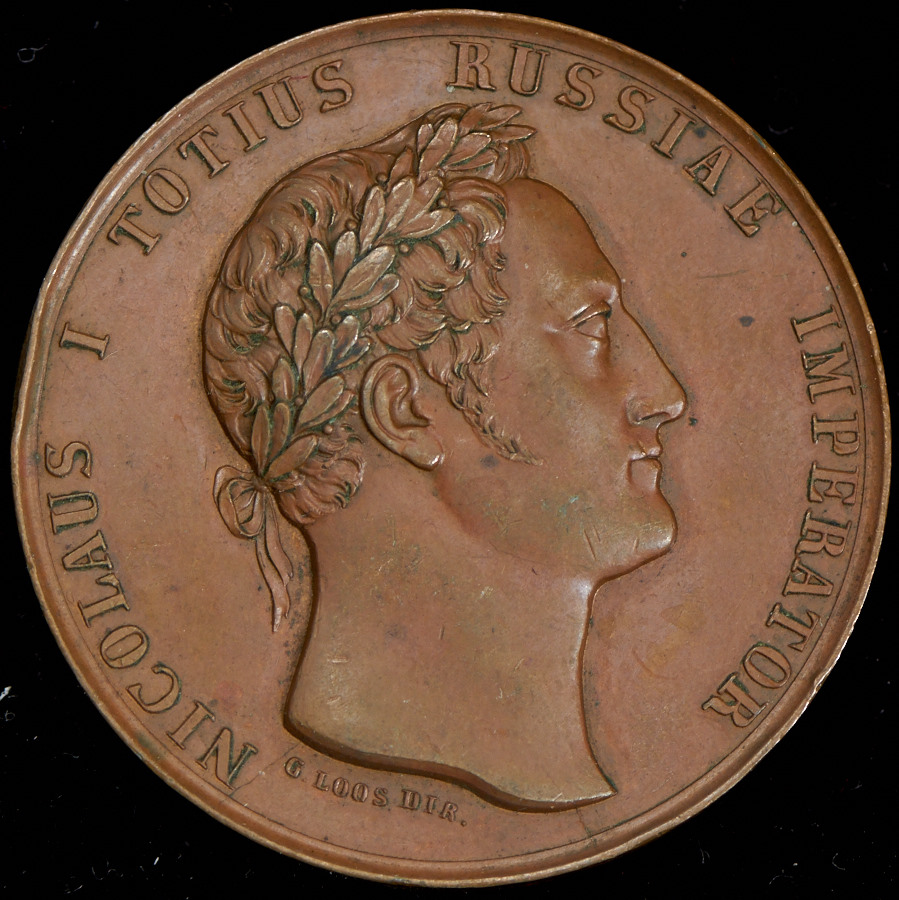 Из серии медалей на события Русско-турецкой войны 1828–1829 гг. Пруссия, Берлин, 1830 г. Медальерная мастерская Лооса. На аверсе под обрезом изображения "G.LOOS DIR.". Диаметр 38,8 мм.