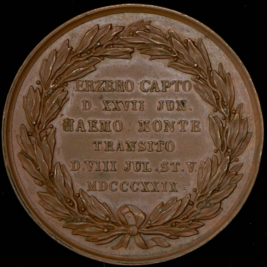 Медаль в память взятия Эрзерума, 27 июня 1829 г., и перехода через Балканы, 8 июля 1829 г..