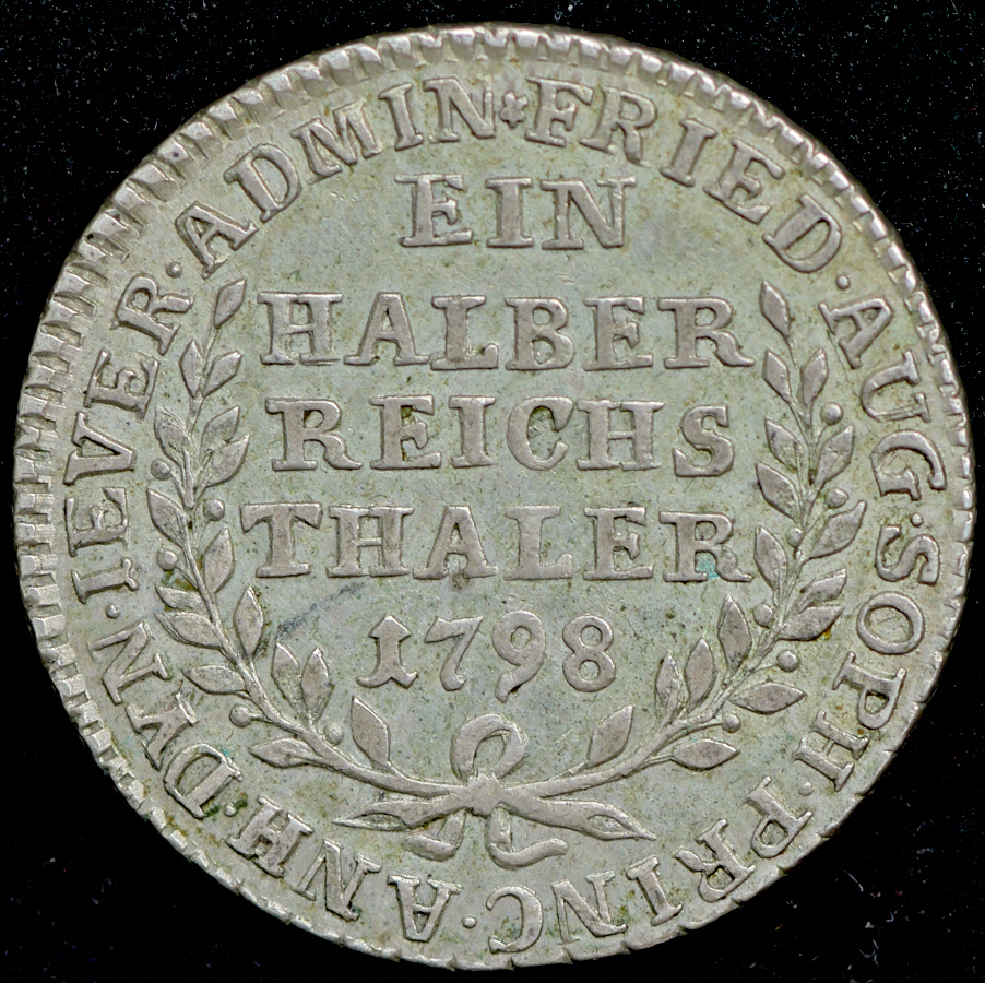 Герцог германского Ангальт-Цербстского княжества Христиан-Август владел также и городом Йевер, расположенном на берегу Северного моря. В 1745 году он выдал свою дочь Софию Августу Фредерику замуж за наследника российского престола, Петра III. В России она стала известна как Екатерина II. После смерти отца, а затем и старшего брата в 1793 году она унаследовала этот небольшой город. Ее сын, Павел I, взойдя на российский престол и став одновременно князем Йеверским, разрешил выпускать в Йевере монеты с изображенным на них российским двуглавым орлом.