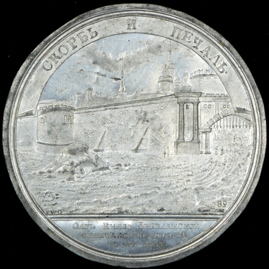 Односторонний оттиск медали "Смерть Олега, Князя Древлянского в 977 году"