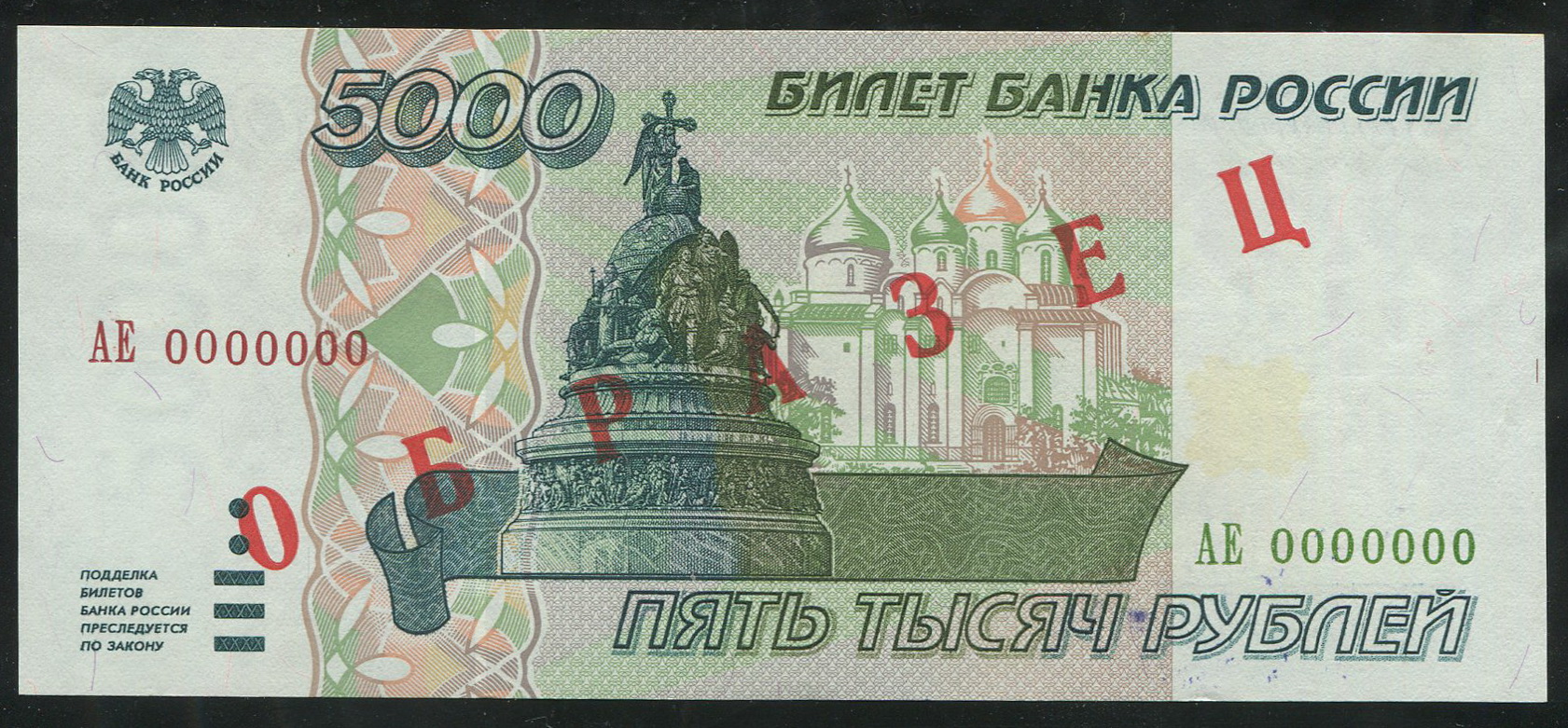 Образец Билета Банка России 10000 рублей 1995 года, АЕ 0000000.