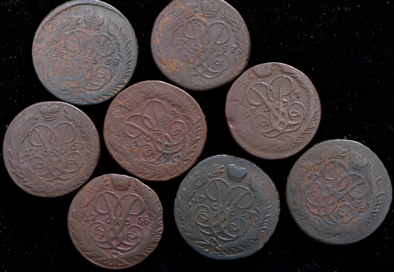 Набор из 8-ми медных монет (Елизавета Петровна)