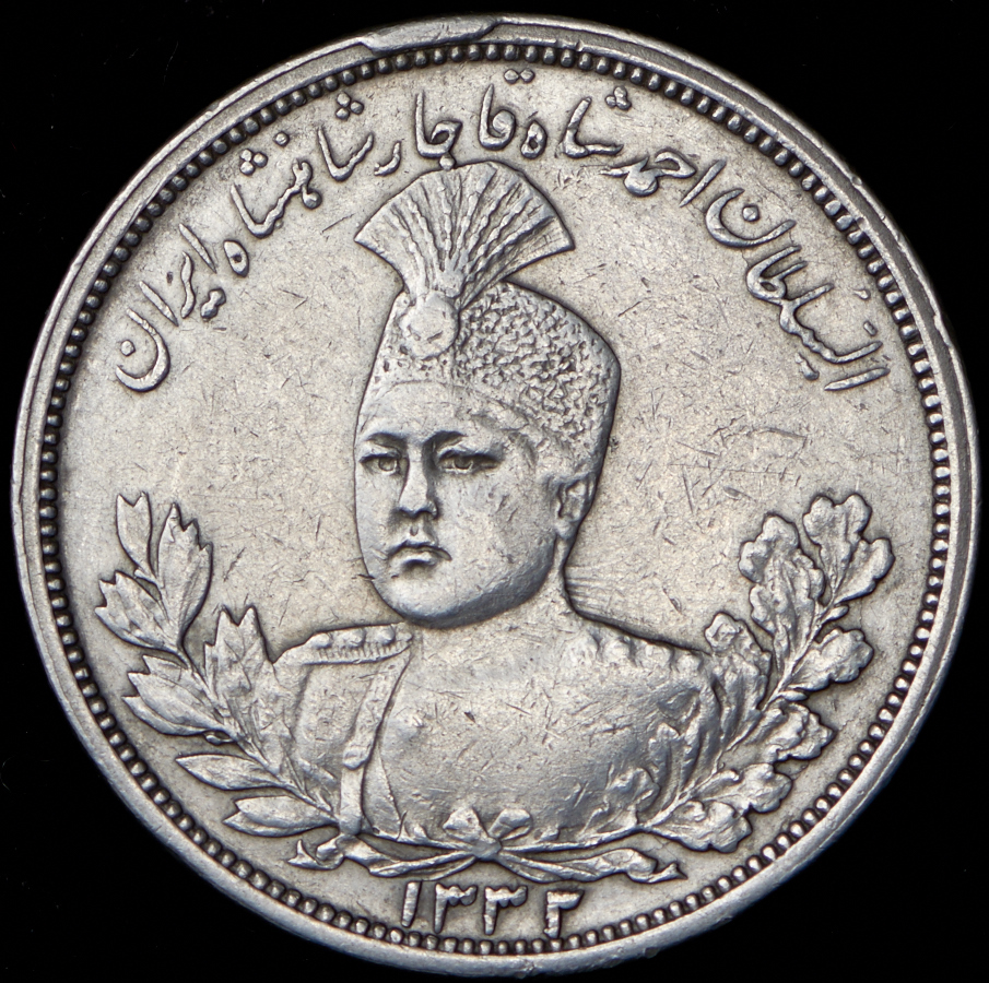 KM# 1058. Шах Султан Ахмад-шах (1909-1925). Серебро 900 пробы.