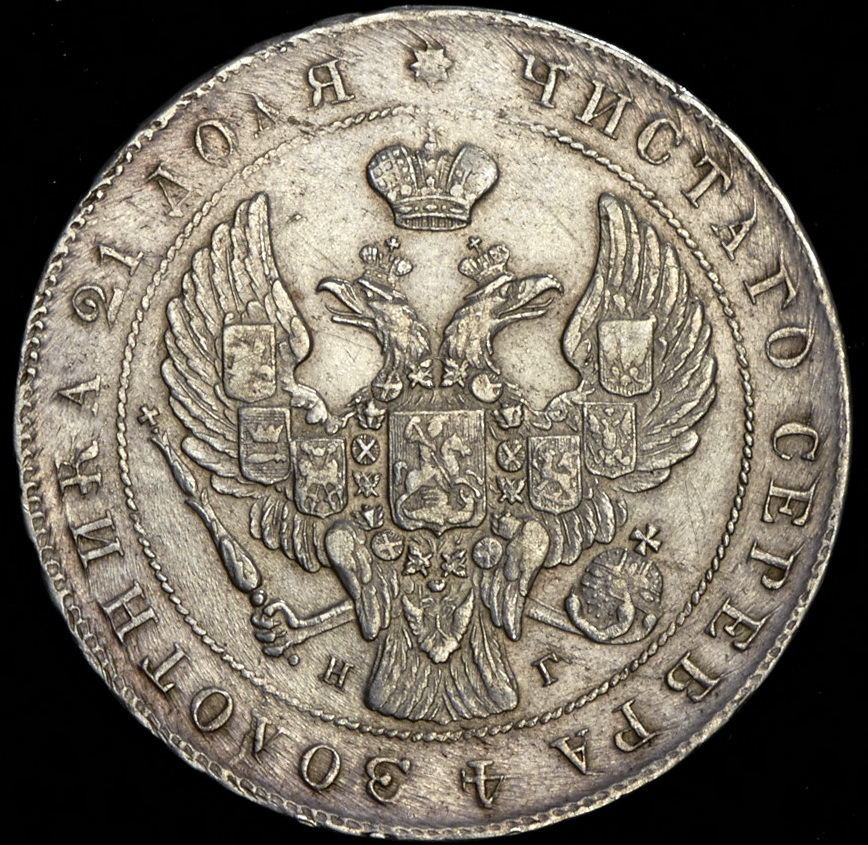 Орел образца 1841 года, в крыле над державой 5 перьев вниз, хвост слегка веером из 11 перьев, скипетр почти касается крыла, знак Ордена крупнее.