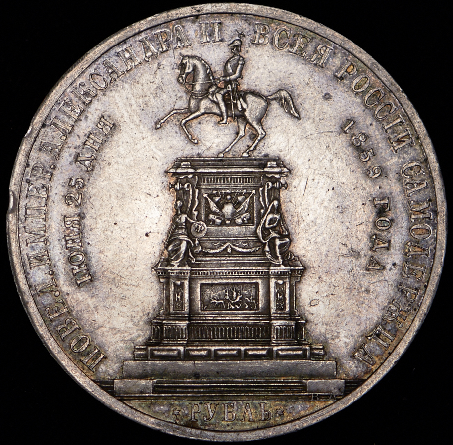 Чеканен по случаю открытия памятника императору Николаю I в Санкт-Петербурге.