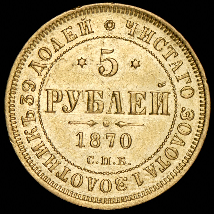 5 рублей 1870 СПБ-НI