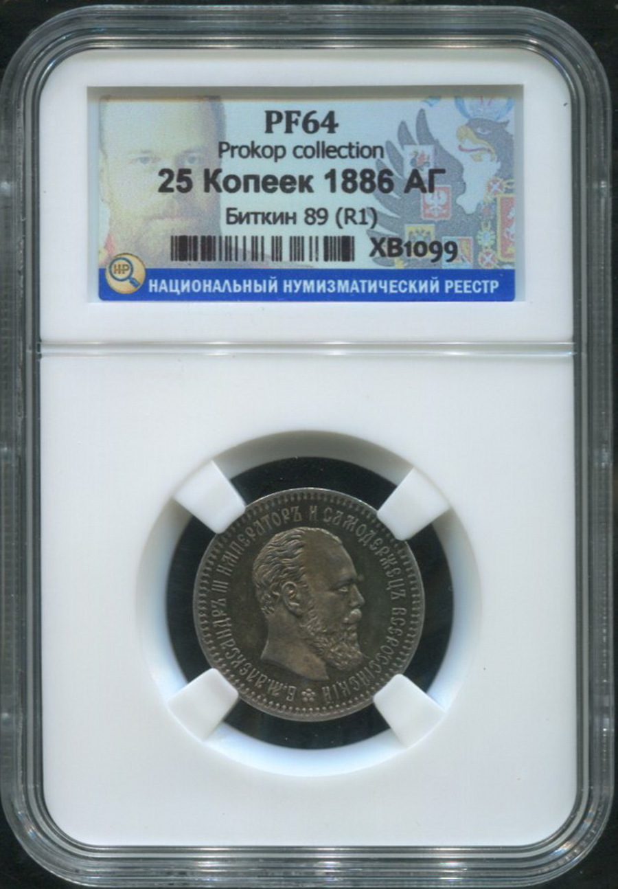 25 копеек 1886 (в слабе) (АГ)