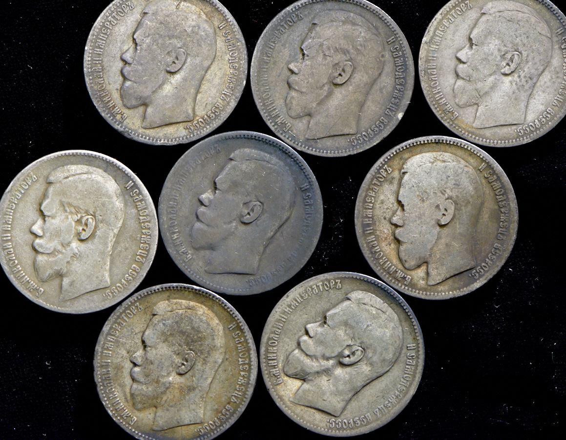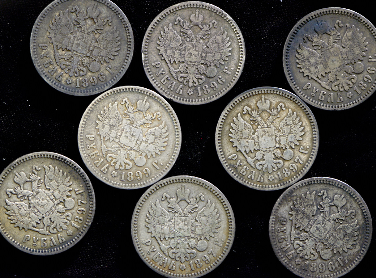 Набор из 8-ми сер. монет Рубль (Николай II)