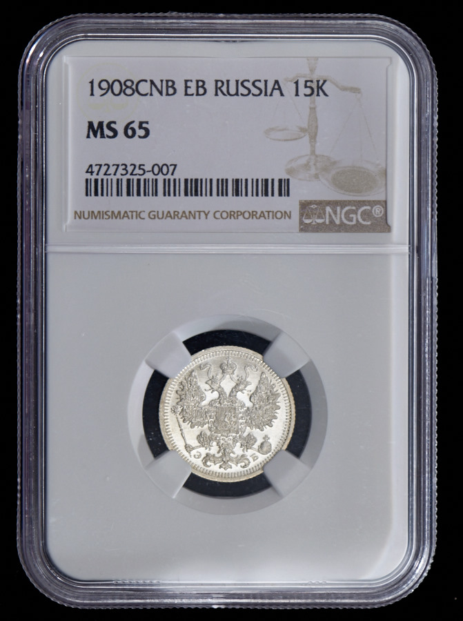 15 копеек 1908 (в слабе) СПБ-ЭБ