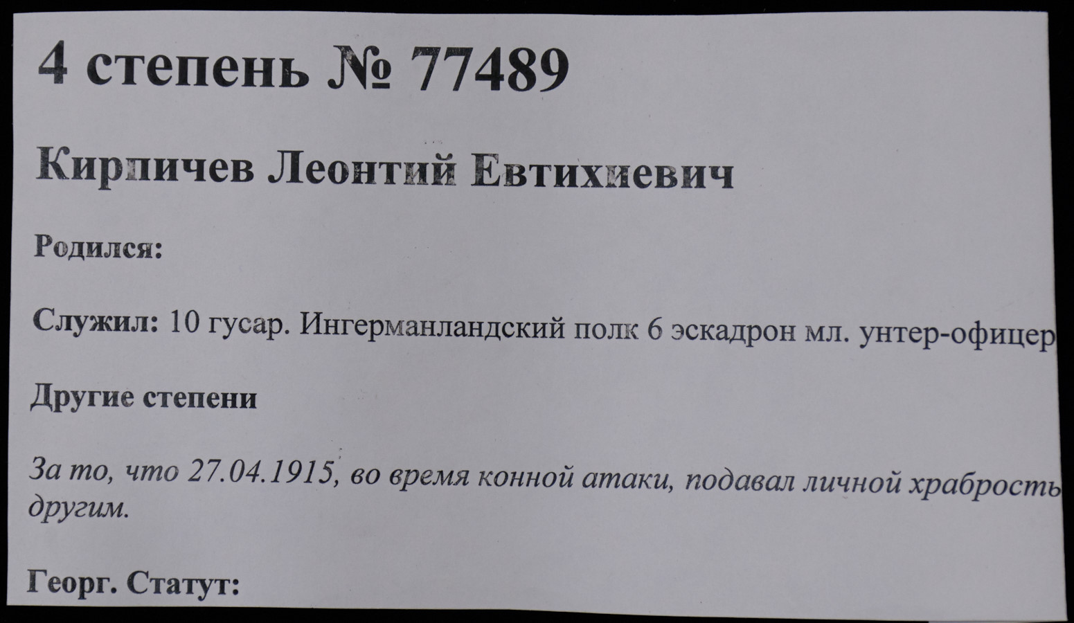Выдан Кирпичеву Леонтию Евтихиевичу.