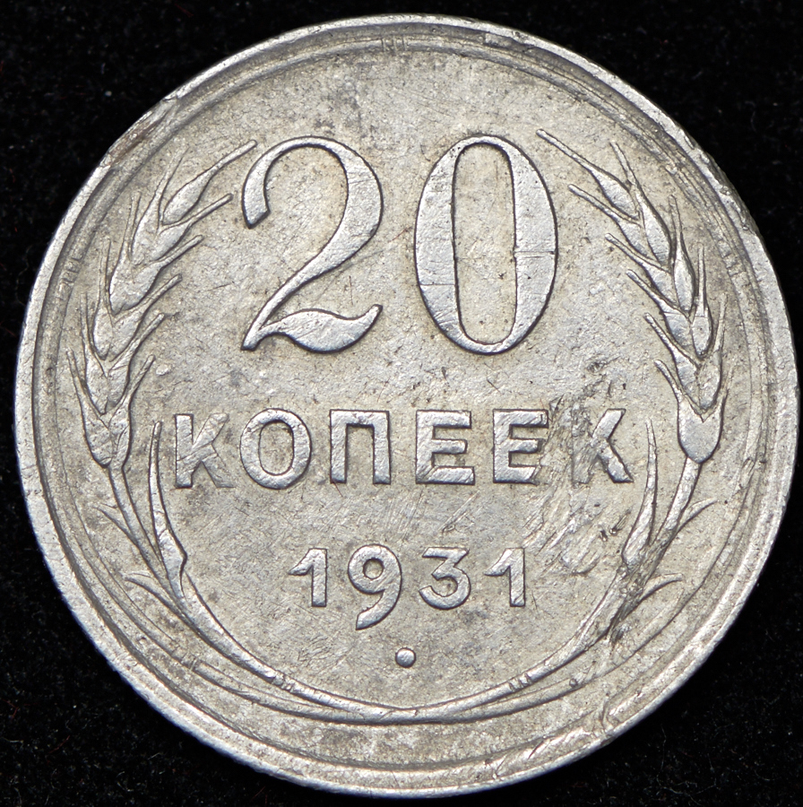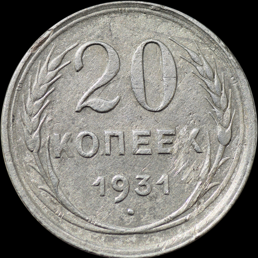 В конце 1931 года чеканившиеся серебрянные разменные монеты (номиналом 10, 15 и 20 копеек) были заменены на монеты нового оформления, которые стали производится из медно-никелевого сплава. Уже отчеканенные к этому моменту монеты были переплавлены. Сохранившиеся же до нашего времени 20-копеечники очень редки.