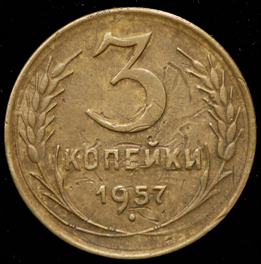 Федорин 135 (200 уе.).Штемпель аверса 1956 года - с 16-тью лентами в гербе.Следы небрежного хранения.Редка.