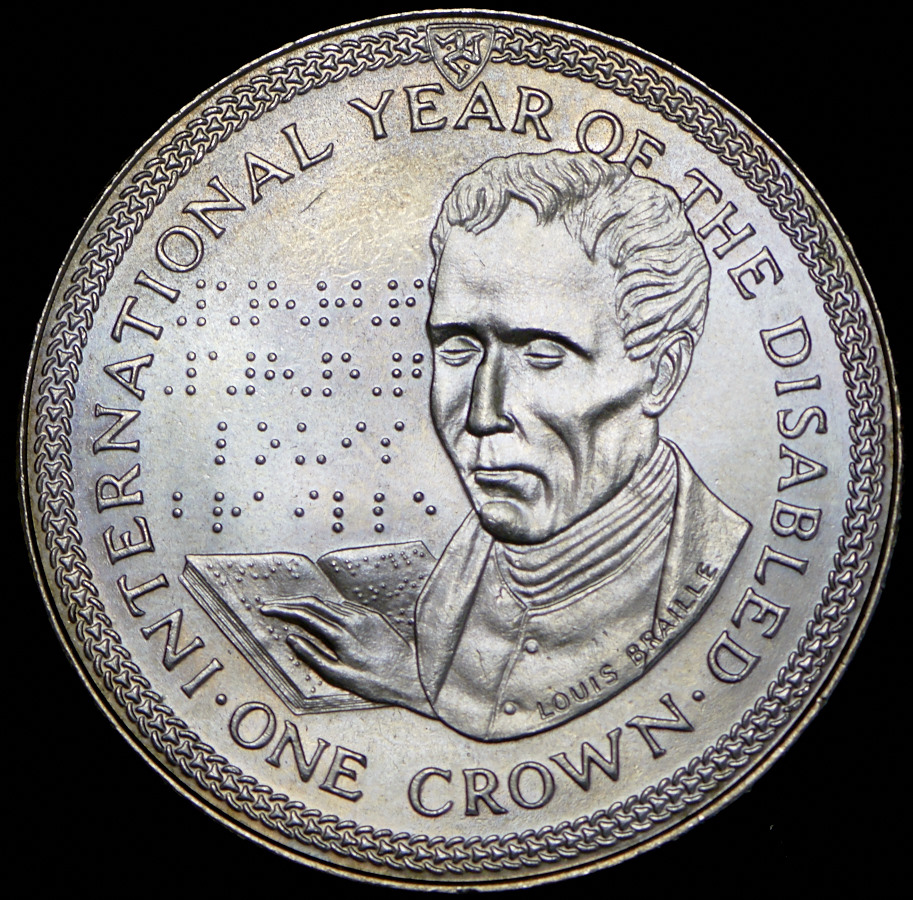 1 крона 1981 "Международный год инвалидов - Луи Брайль" (Остров Мэн)