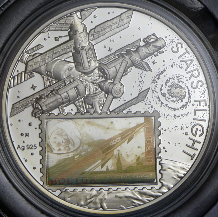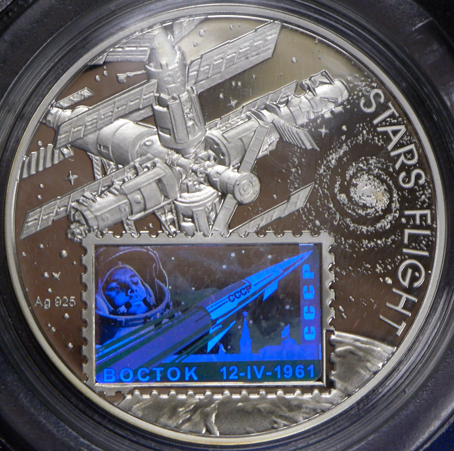 Серебро 925 пробы. С голограммой. Тираж до 5000 экз. Диаметр 38,61 мм.
