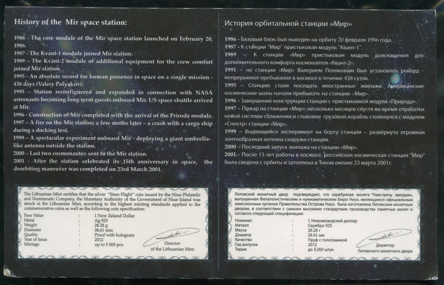 1 доллар 2012 "Навстречу звездам" (Ниуэ) (в п/у)