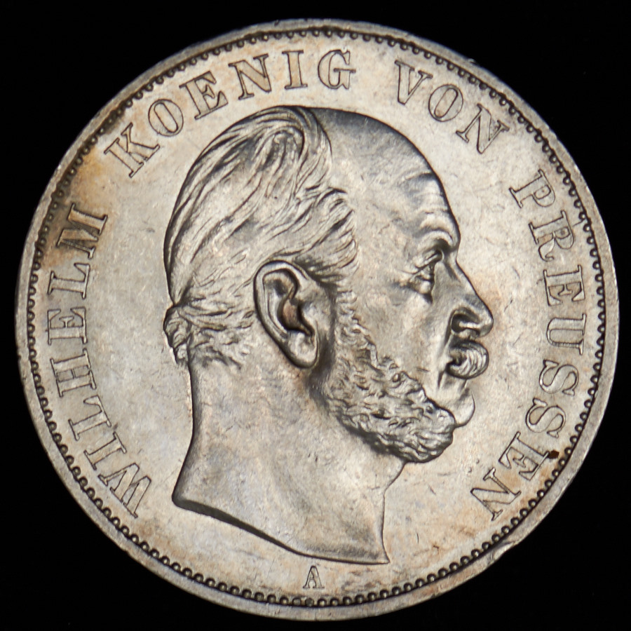 Легенда аверса "WILHELM KOENIG VON PREUSSEN".Легенда реверса "SIEGES THALER".