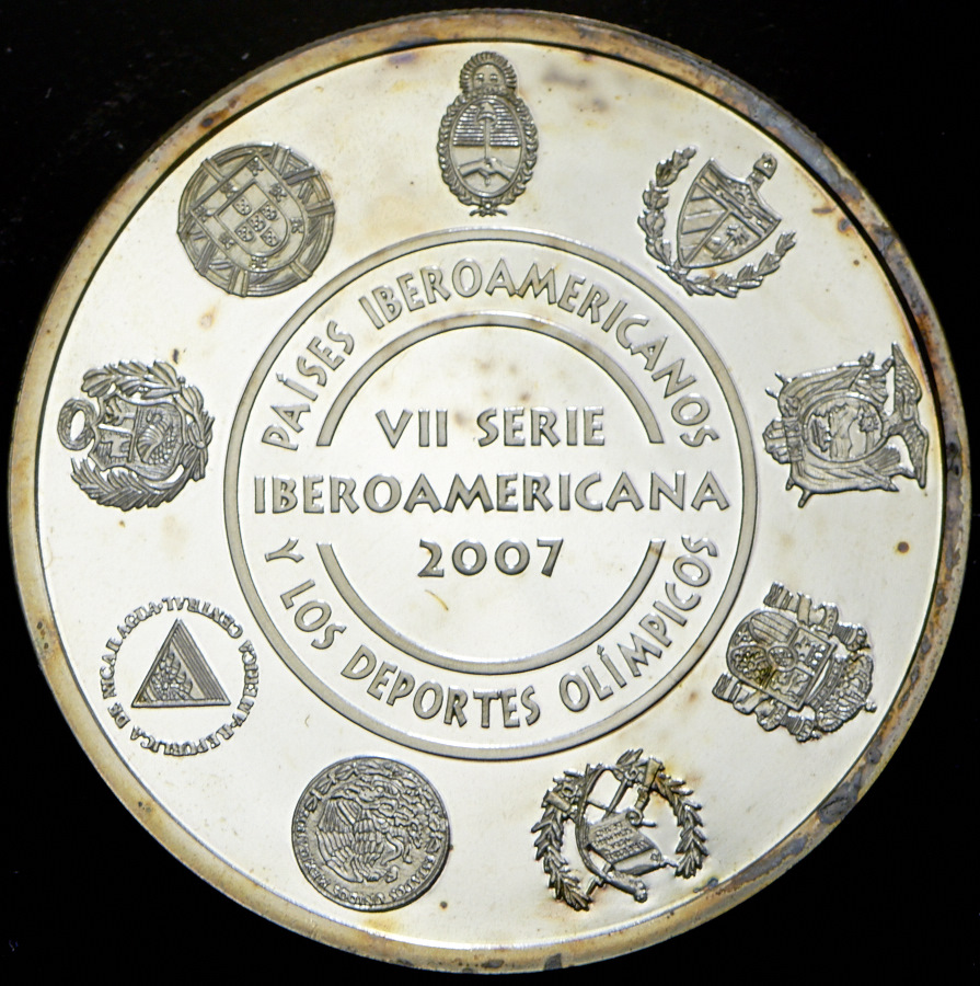 Медаль из набора, в который кроме того входили 9 монет седьмого выпуска Иберо-Американской серии монет, посвященного участию Иберо-Американских стран в Олимпийских играх.